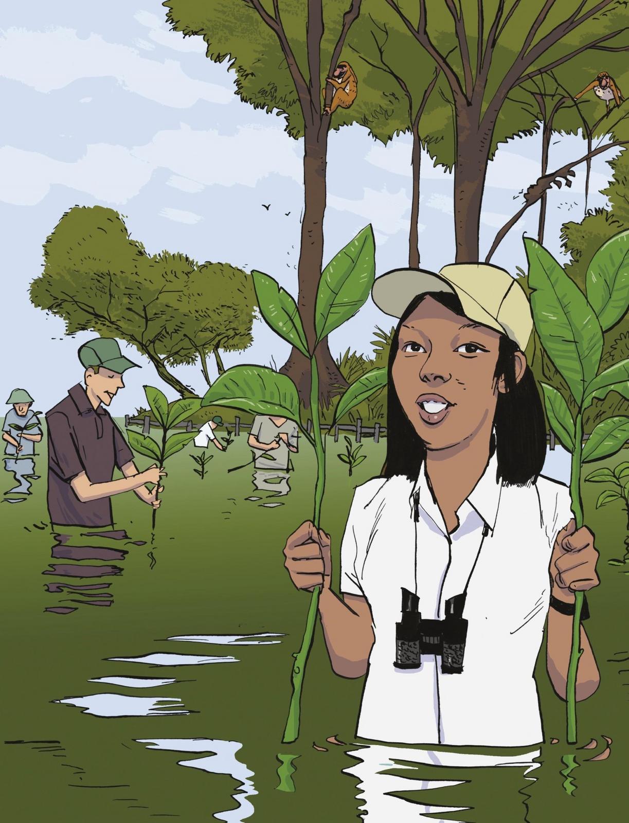 През една ваканция Аделин събрала 150 при¬ятели и съученици, с които да засадят мла¬ди мангрови дръвчета в един резерват. До¬като садили, децата срещнали маймуни, змии и гущери. Неочаквано за тях, те се забавлявали и научили много нови неща за природата.