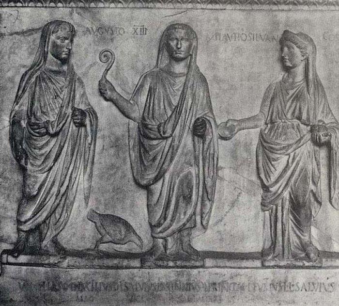 Римски релеф, изобразяващ гадател, разглеждащ черния дроб на бик, след като е бил принесен в жертва, Лувърът.