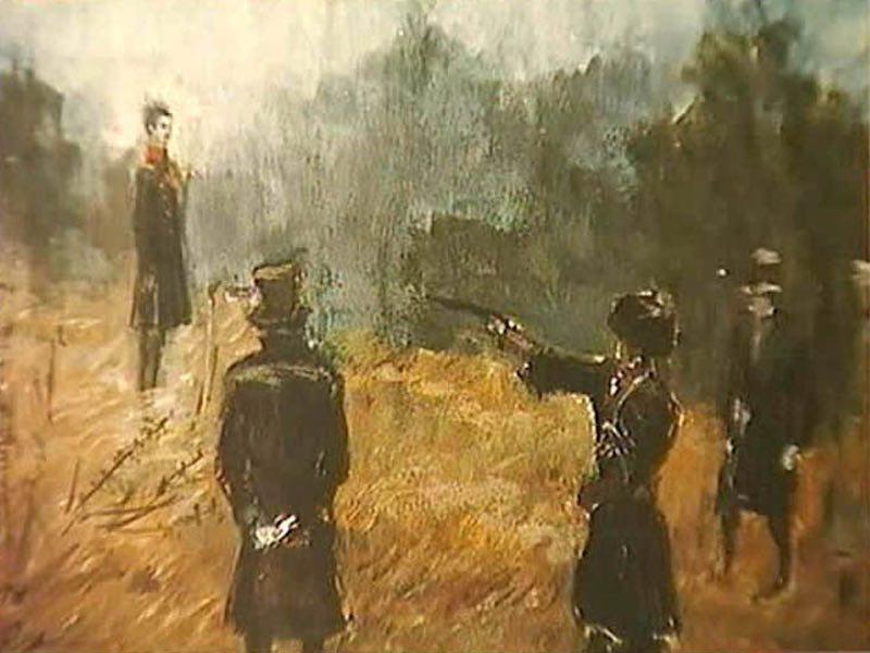 На 15 юли 1841 г., в седем вечерта, в подножието на планината Машук близо до Пятигорск проехтява изстрел. Куршум, изстрелян от ръката на Николай Мартинов, уцелва Михаил Лермонтов. Изстрелът е смъртоносен. Поетът е убит на дуел, също като този, когото боготвори – Александър Пушкин. Веднага след двубоя тъмни облаци покриват небето и се разразява страшна гръмотевична буря. Няколко часа тялото на Лермонтов лежи под проливния дъжд. Самата природа скърби и оплаква изключителния човек и поет, който умира толкова абсурдно.