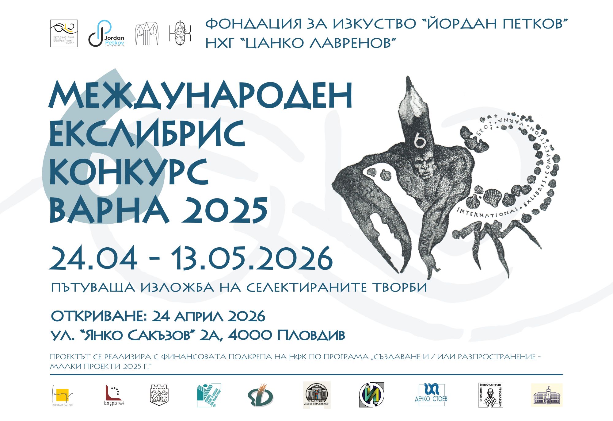 От 24 април 2026 г. Международният екслибрис конкурс във Варна отново ще бъде представен пред учениците и преподавателите на Националната художествена гимназия „Цанко Лавренов“ в Пловдив. Реализирането на това гостуване е възможно благодарение на финансовата подкрепа на Национален фонд „Култура“ по програма „Създаване и/или разпространение – малки проекти 2025 г.“.